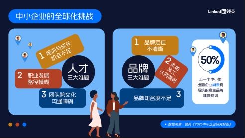 近日,领英针对全球市场发布了《2026中小企业研究报告》,并对中国出海的中小企业进行了定向调研。领英首席经济机遇官阿尼什·拉曼(Aneesh Raman)指出:“我们应该投入更多关注与资源给中小企业,正是他们创造了全球多数新工作岗位,尤其在新兴市场。AI给予他们以前不可能拥有的竞争力,而资源有限、快速迭代的特质,将成为未来最稀缺的能力。”